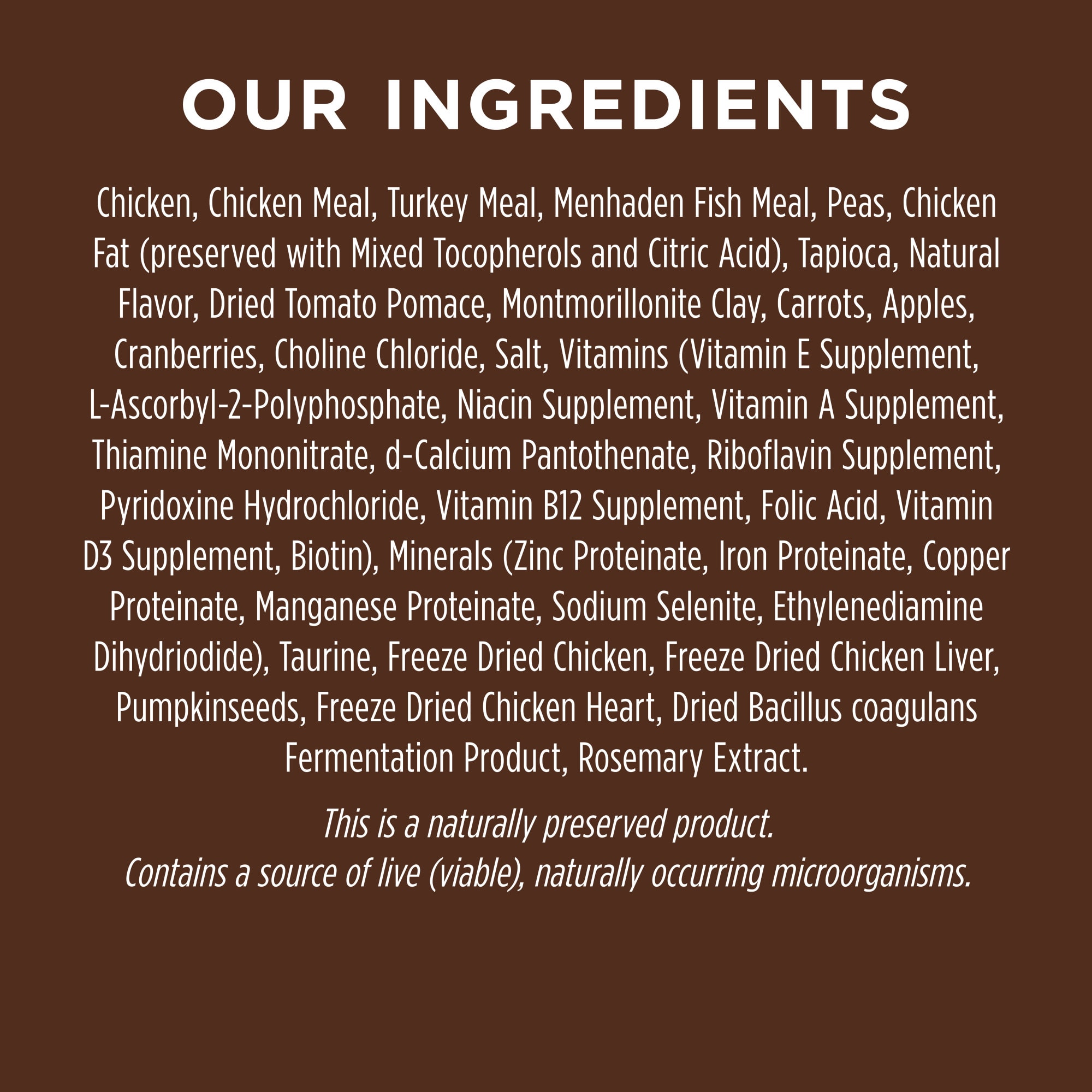 Otherwise I usually get her Instinct with freeze dried raw chicken Hills Science diet or just fancy feast natural gourmet wet foods. Real chicken is the 1 ingredient in this cat food kibble. An 11 pound bag of Merrick before grain costs me about 23 and I give my cats 12 cup a day and occasionally some wet food to supplement Chicken soup for the cat lovers soul or natural.